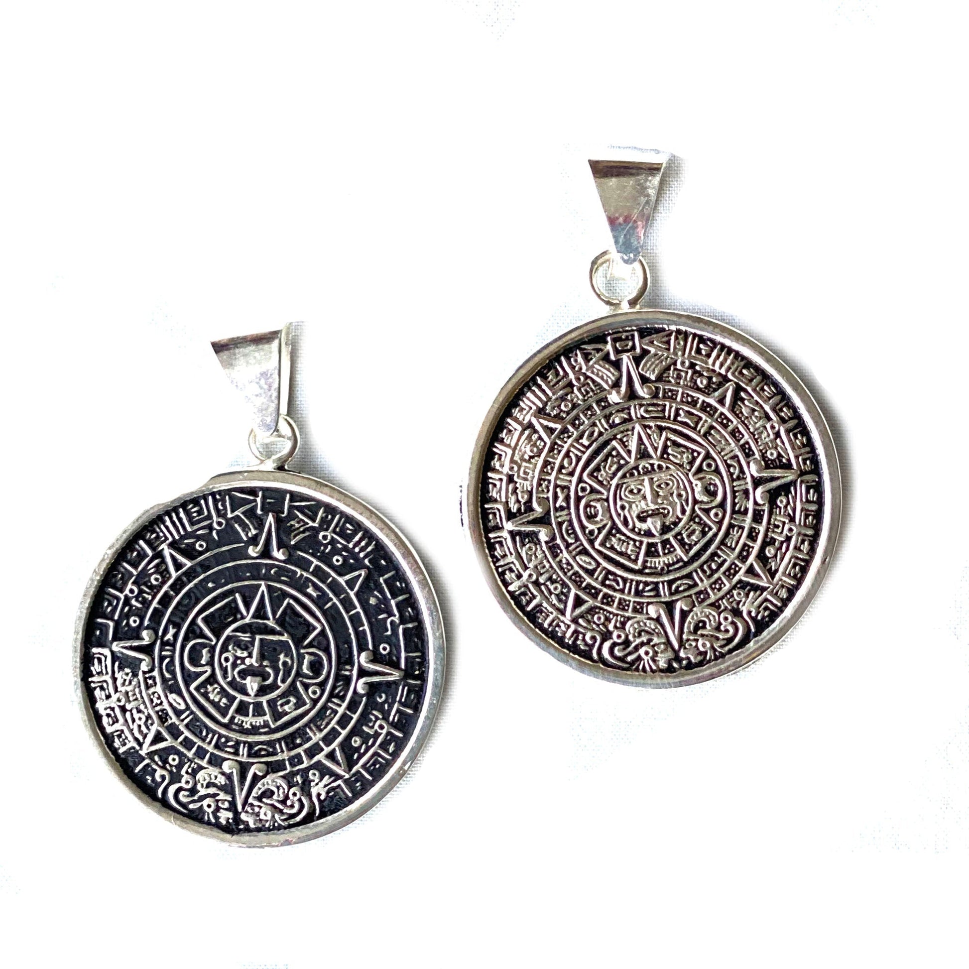 Handcrafted in high-quality alpaca silver, this Aztec calendar pendant necklace has intricate design detailing to replicate the original sun calendar.