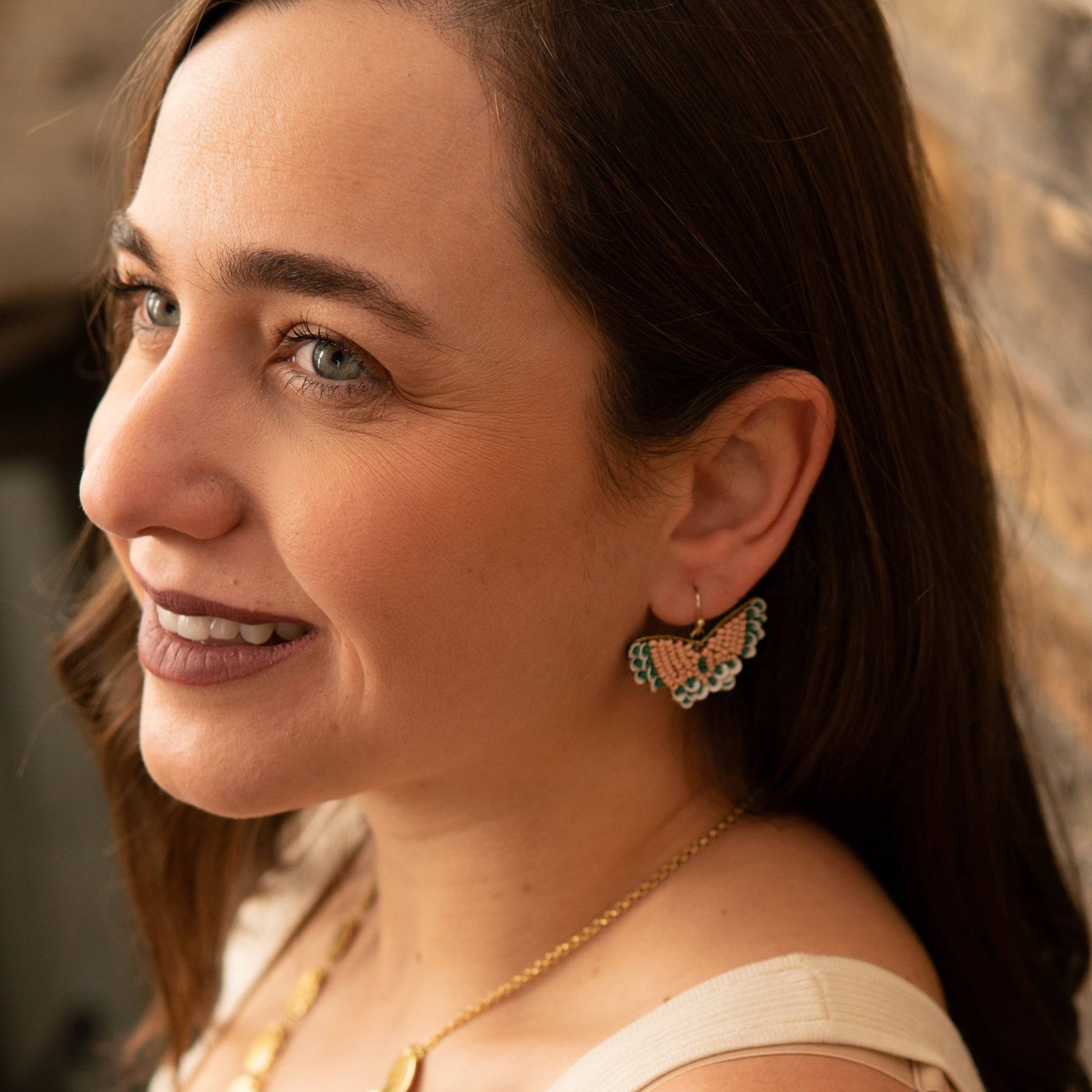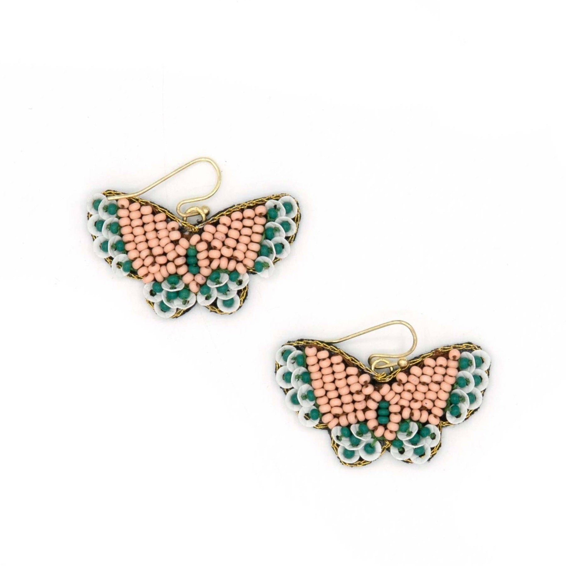 Hand beaded in India, these butterfly earrings are lightweight and playful, making them a seriously fun accessory for spring and summer. Earrings measure 1.25". Made from glass beads. Nickel-free.