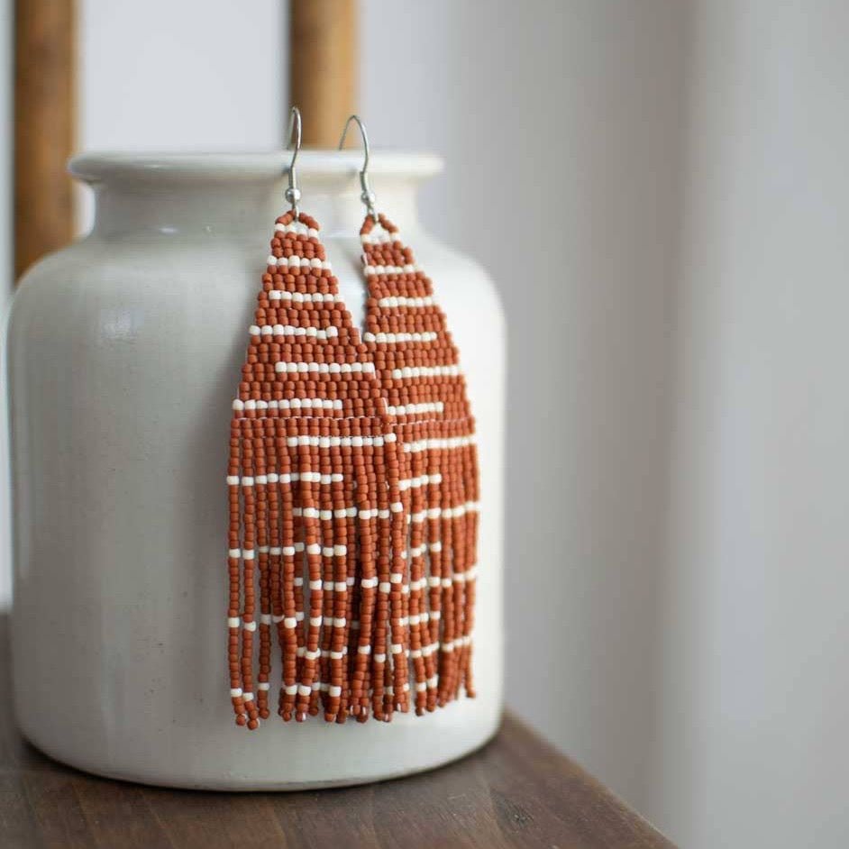 The perfect statement among your simplistic wardrobe, these artisan-made beaded earrings add an intricate elegance to your unique look. This is fair trade jewelry that won’t weigh you down, whether you want to add flavor for a night out or are waiting in line at the grocery store. It is smooth to the touch with rich tones of beige and terra cotta.