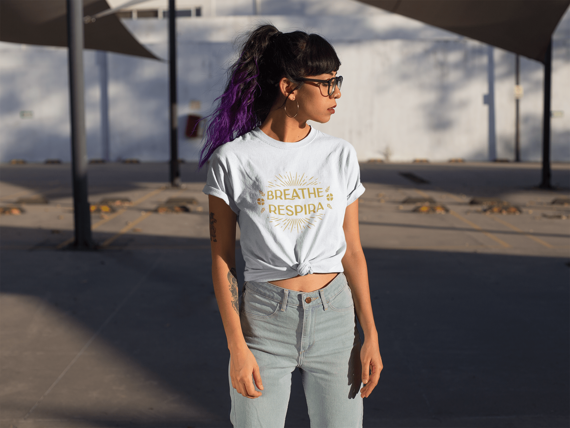 If you're looking for a t-shirt that is comfortable, stylish, and will remind you to take a breath, look no further than the Breathe ~ Respira Unisex Jersey Short Sleeve Tee! This classic tee is made of soft cotton and has a quality print that will make you want to wear it over and over again. The t-shirt also has ribbed knit collars to bolster shaping and dual side seams that hold the garment's shape for longer. But the best part of this t-shirt is the reminder for you or others to take a break to respirar or pause to meditate. So whether you're working out, running mandados, or just need a reminder to relax, the Breathe ~ Respira Unisex Jersey Short Sleeve is just for you.