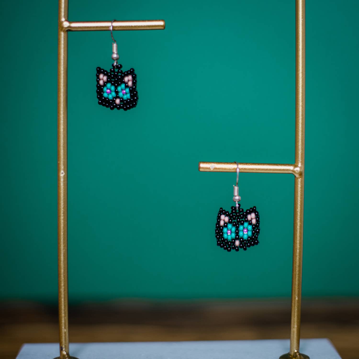 Calling all cat lovers! This adorable beaded earring comes in assorted colors for a fun addition to your outfit!