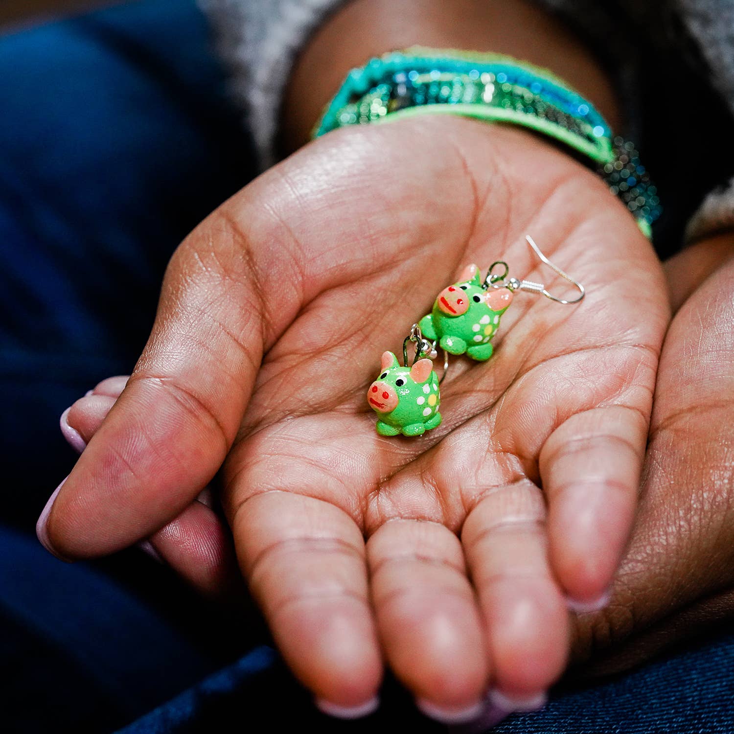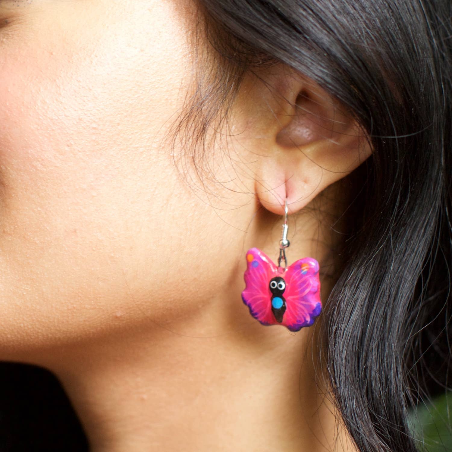 These fair trade Ceramic Earrings are cheerful and lightweight. They come in a variety of colors, animals, and insects. Colors will vary due to hand painted nature of each set of earrings. The earrings hang from surgical steel hooks. Ceramic Skeleton Earrings also available. Each purchase empowers Guatemalan artisans.