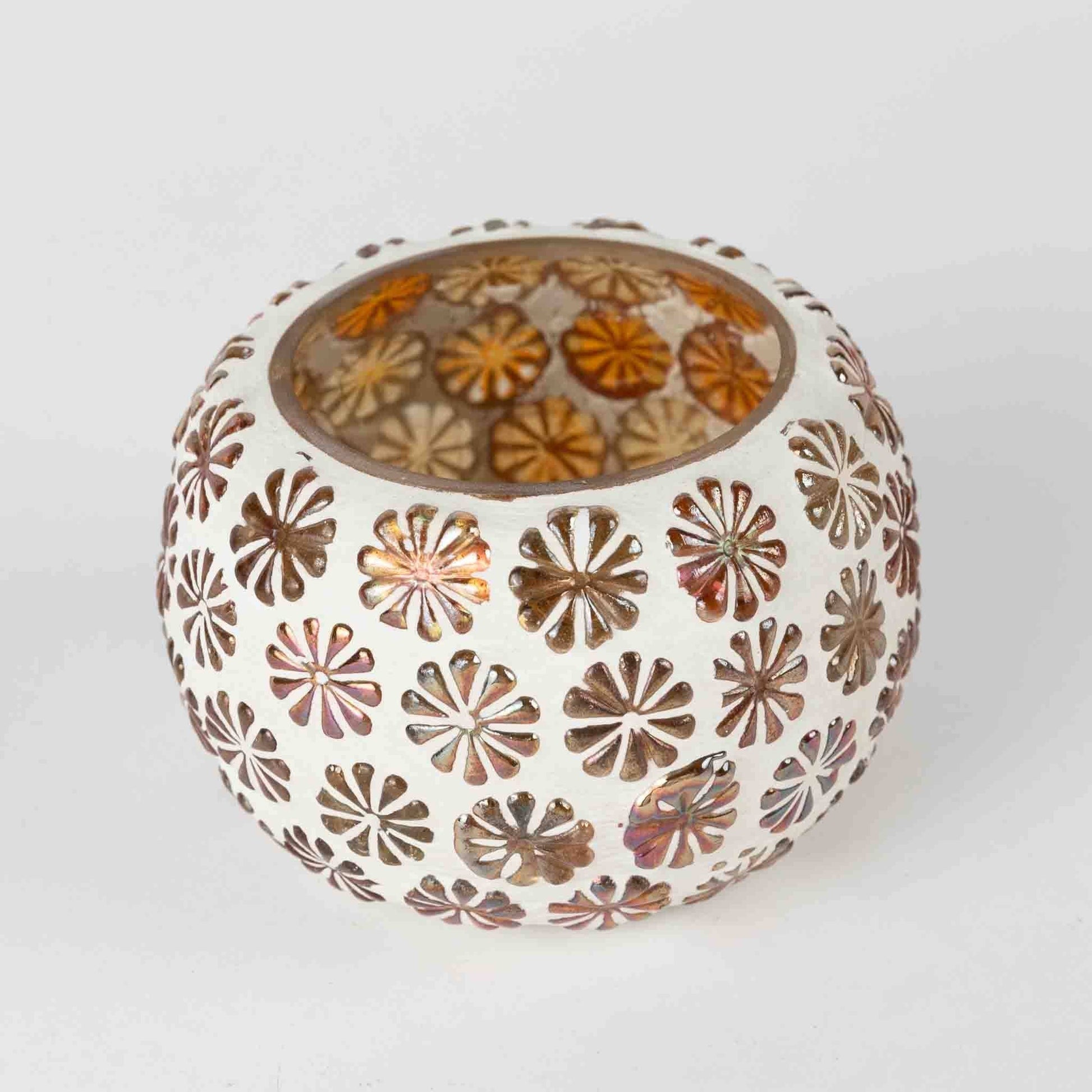 Illuminate your space with the Chamakana Candleholder in yellow. Featuring a groovy floral design, this fun and functional tealight holder will add a glow to any room. The glass mosaic design is perfect for creating colorful and lively energy. Handcrafted in Moradabad, India, by women who work with Noah's Ark International Exports, this piece was made to make you smile.