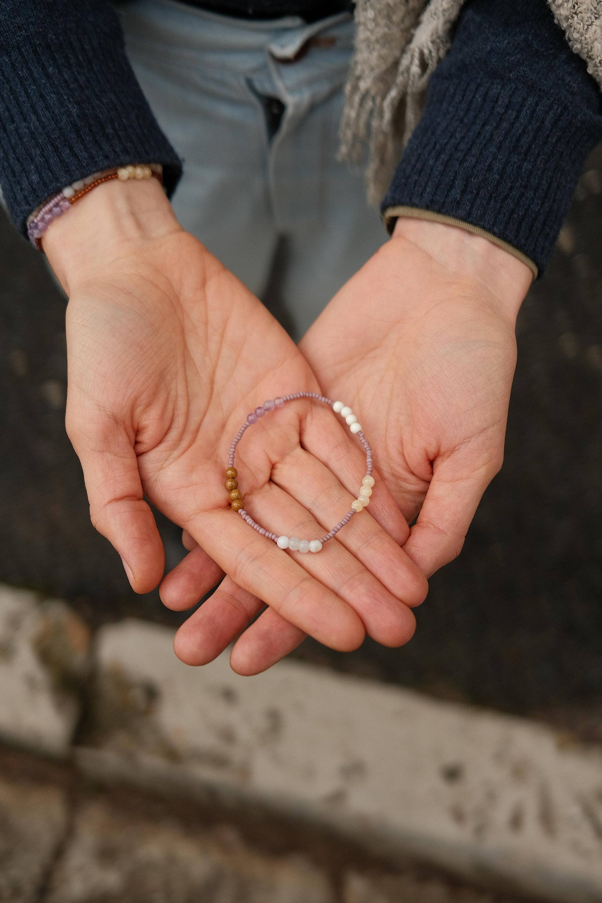 Handmade by survivors of trafficking, this bracelet creates living wage jobs and reminds us of our connection with others around the world as we heal, together. The Details Handmade by survivors with semiprecious gemstones, glass seed beads, elastic Perfect for: Birthday Gifts, Gifts for Mom, Mother's Day, Gifts for Her, Christmas Gifts